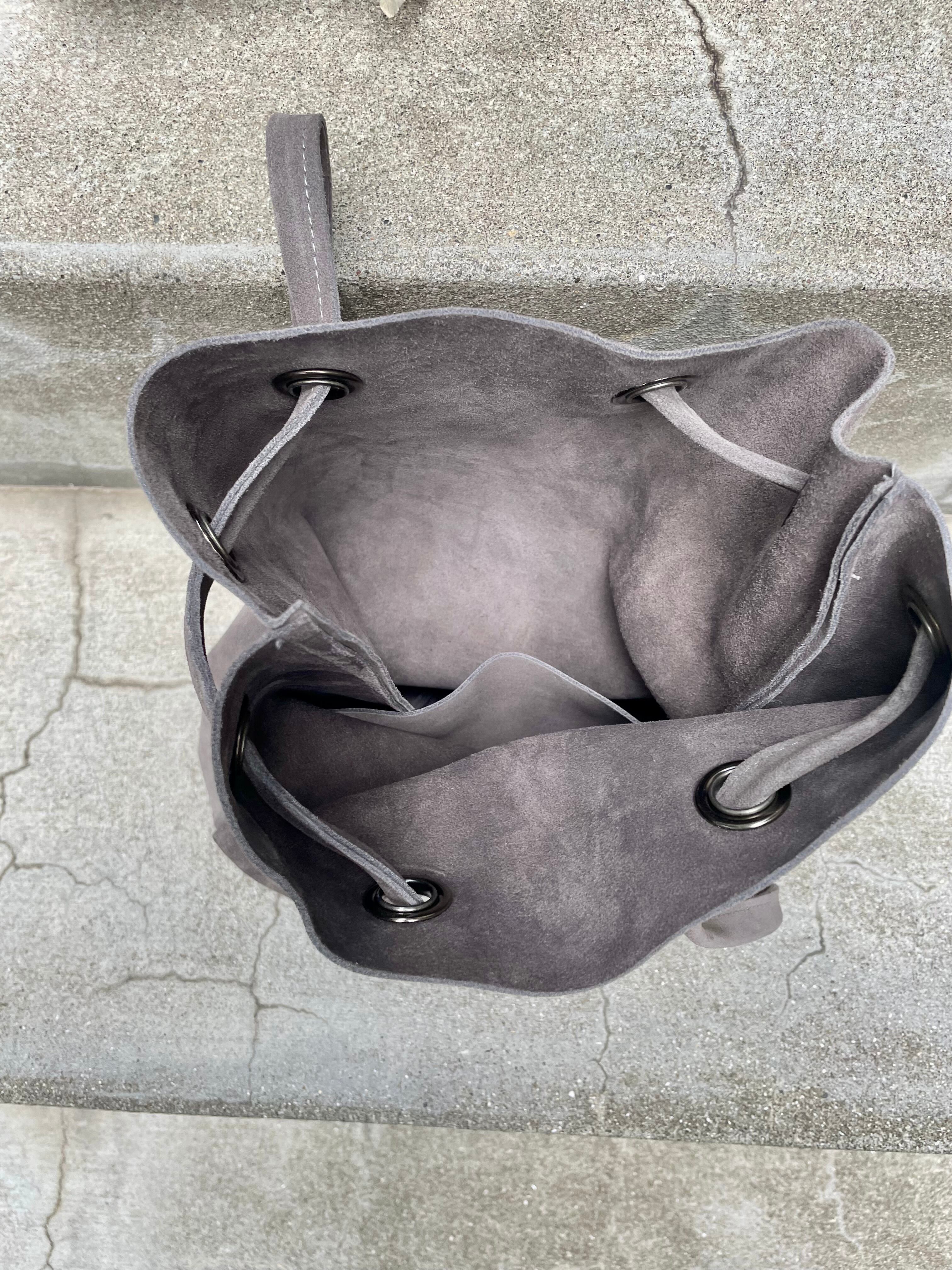 牛革のベロアの巾着バッグです