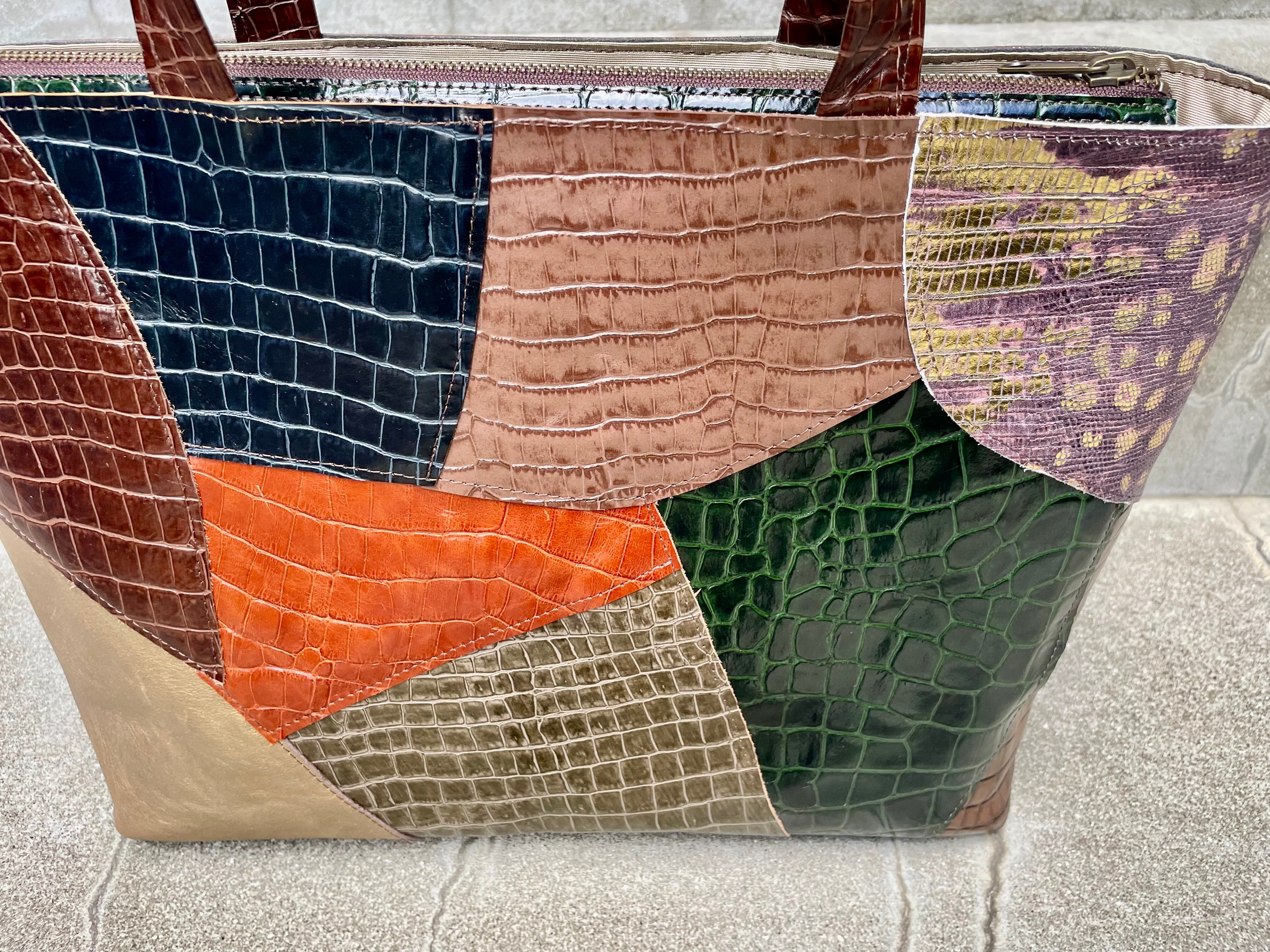 色々な革の組み合わせのトートバッグ