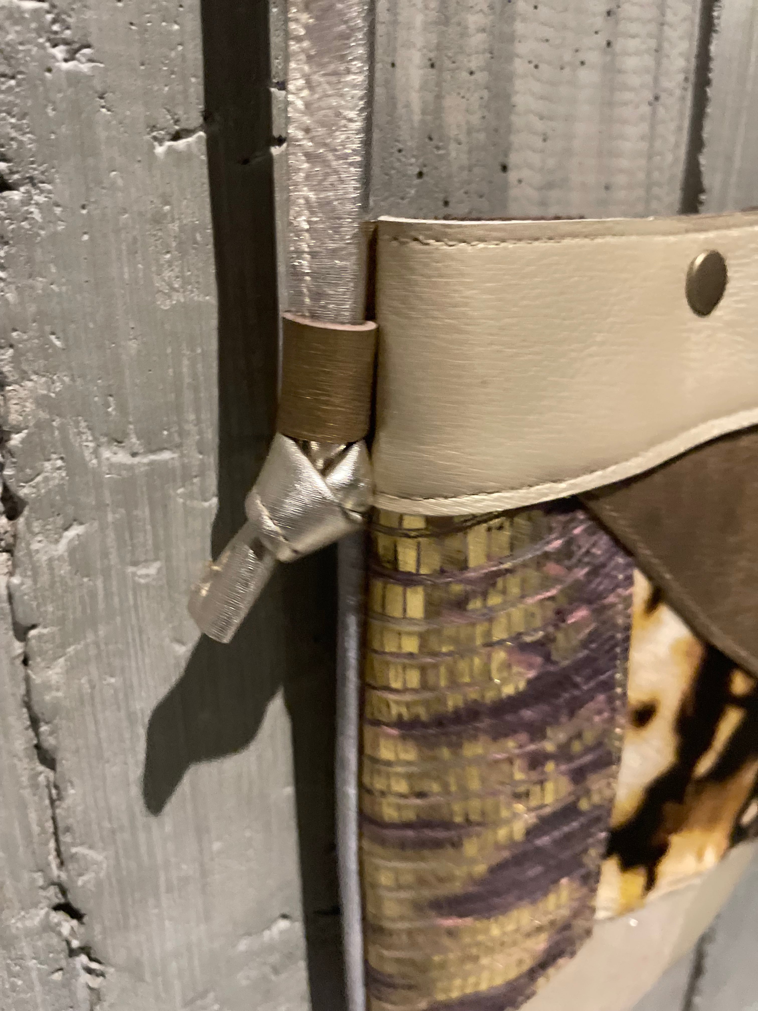 このパッチワークポシェットは、様々な柄や色を取り入れたデザインが特徴のユニークなアイテムです。多彩な布地が織りなす美しさは、日常使いから特別なシーンまで、あなたのスタイルを際立たせます!ファッションのアクセントとして、どんなコーディネートにも映える一品です。