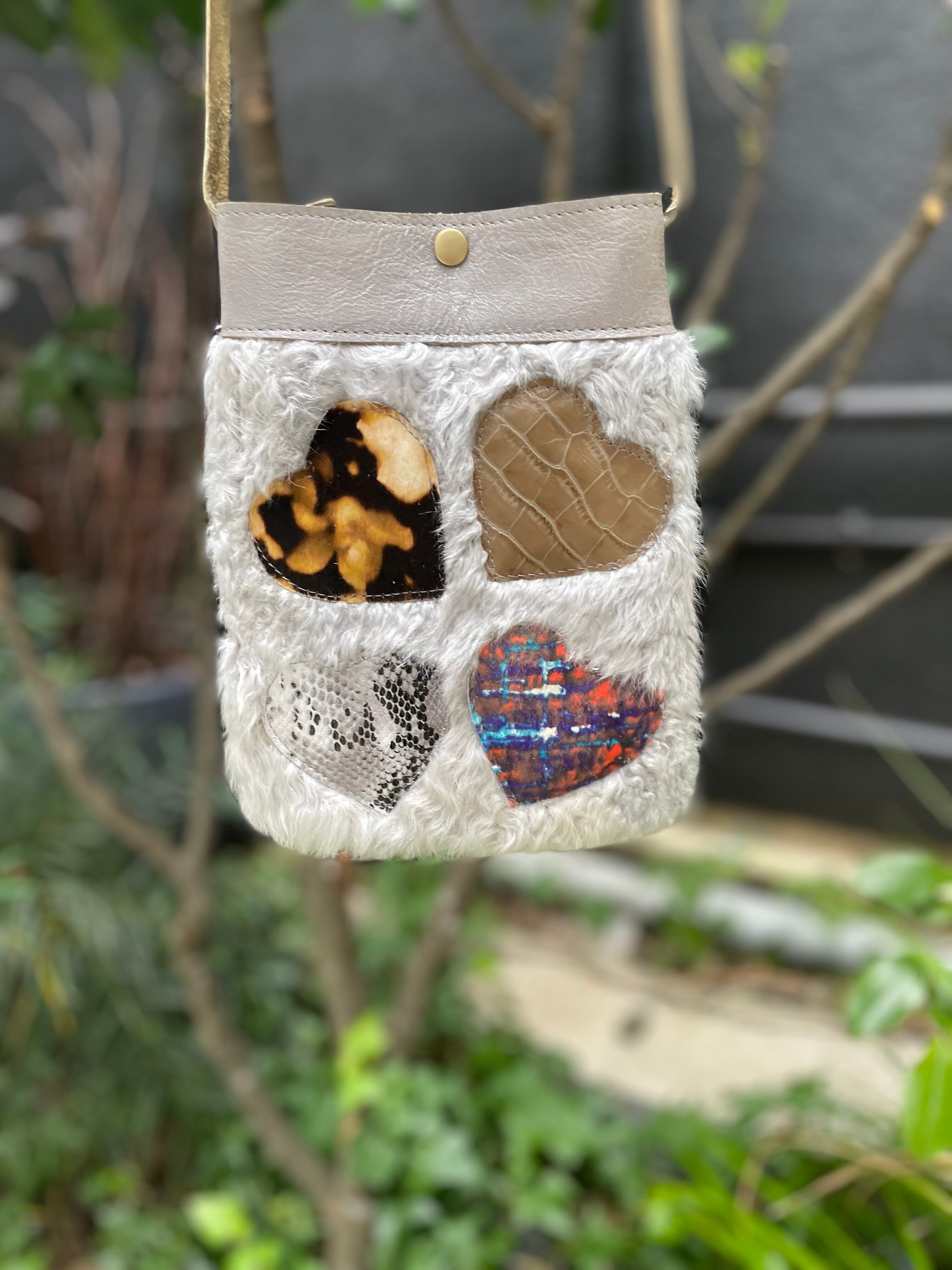 ■個性的なハートパッチワークポシェット