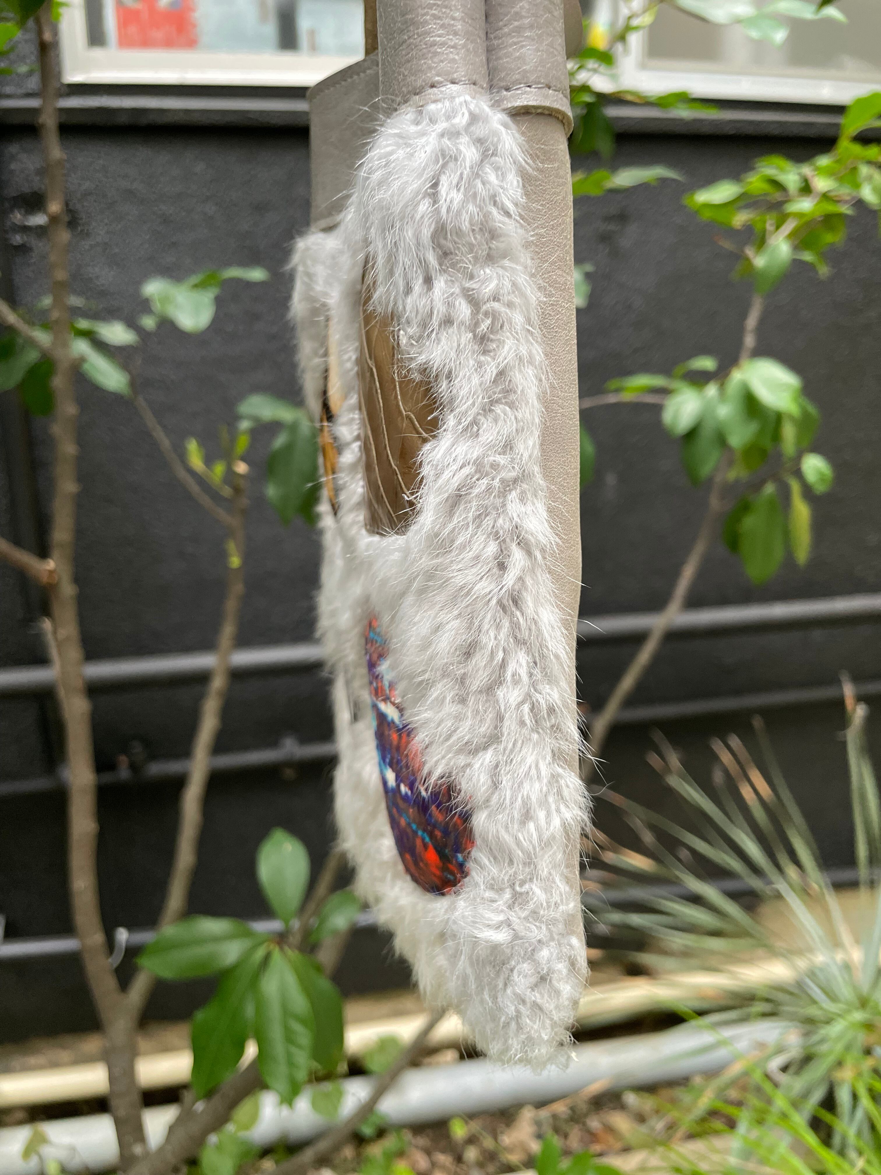 ハラコと牛革をハートのパッチワーク切って乗せました