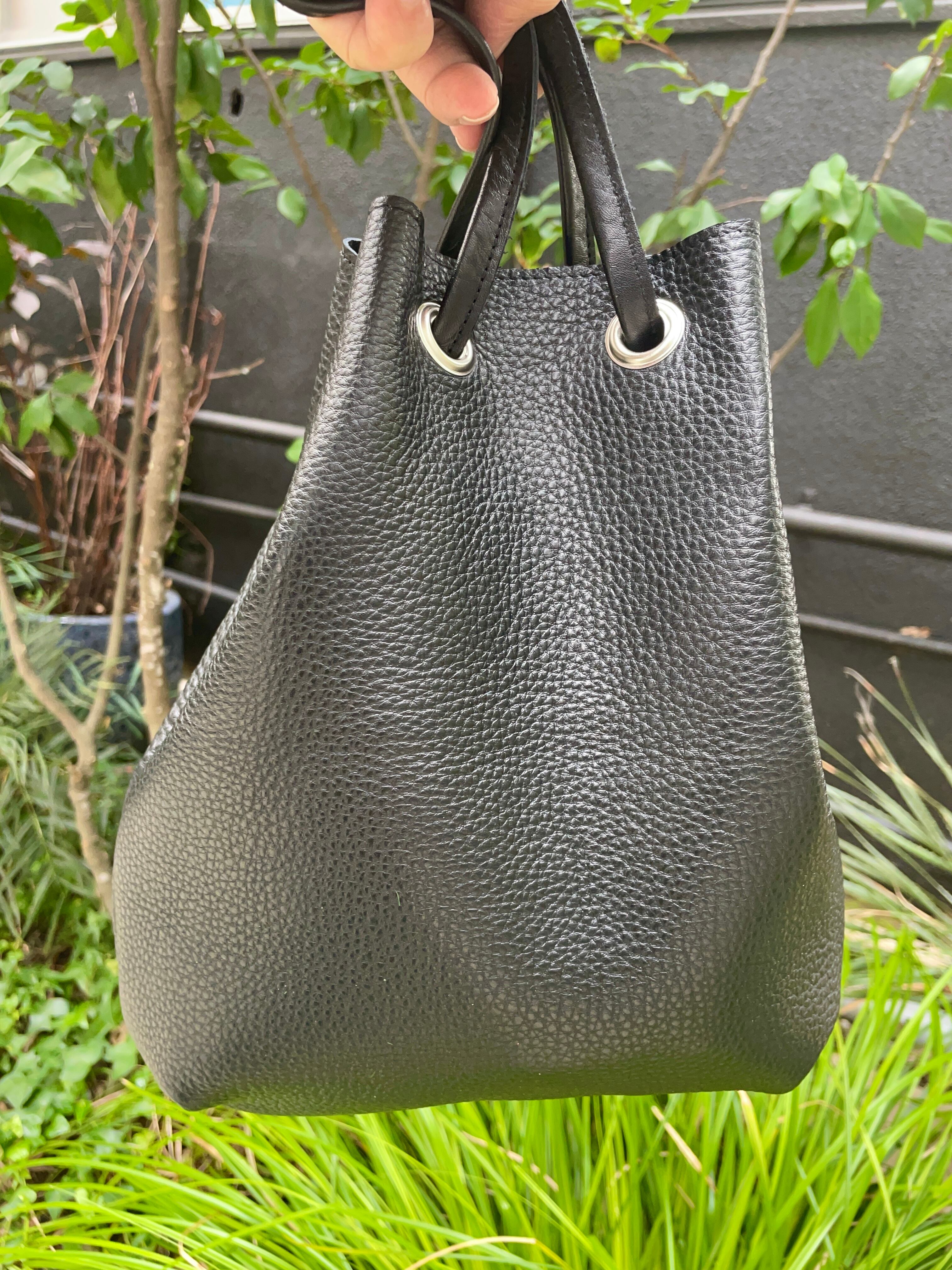 牛革シボ巾着バッグ