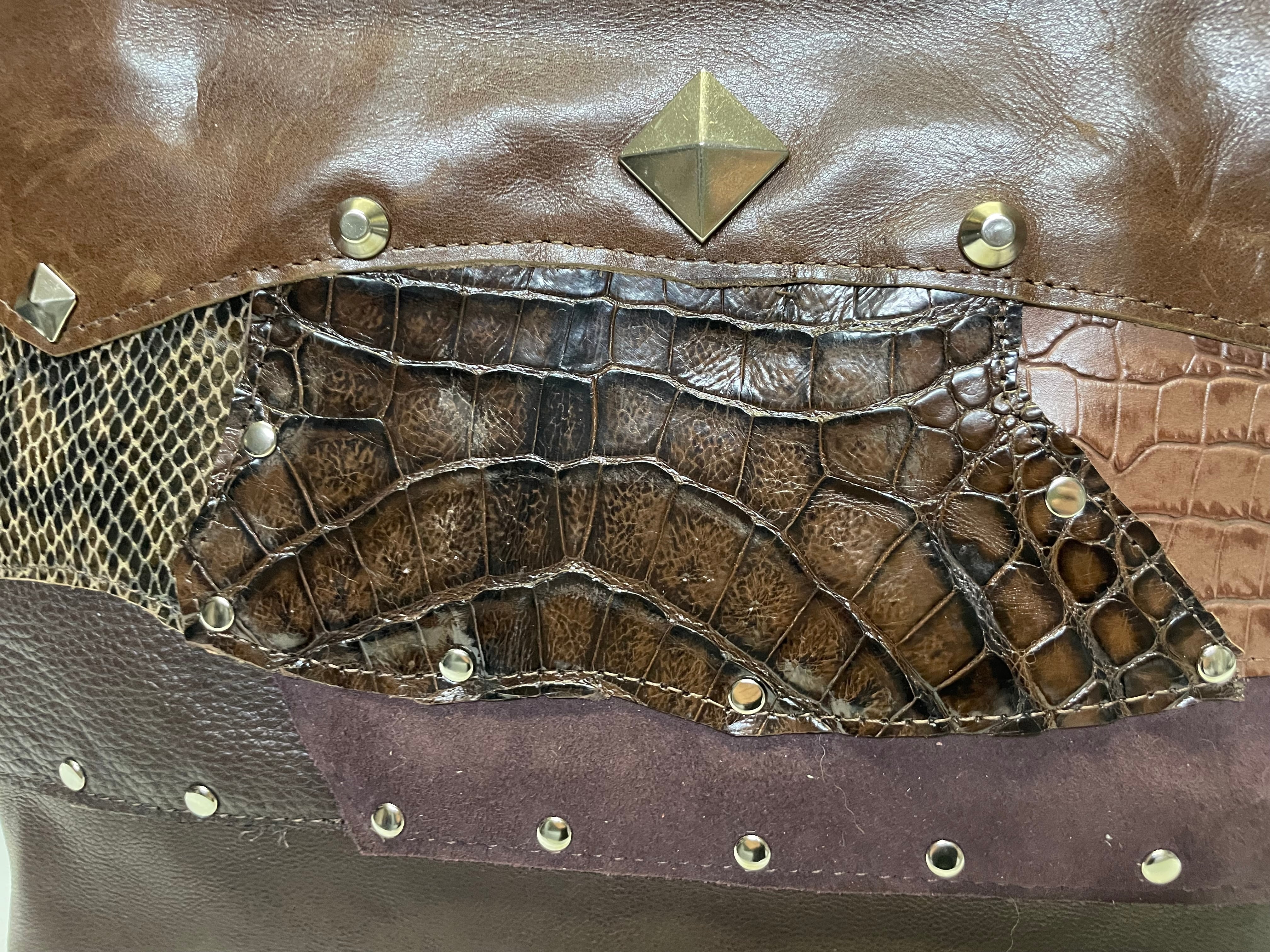 ワニ革を中心に使って 茶系の色々な革の組み合わせ作りました。