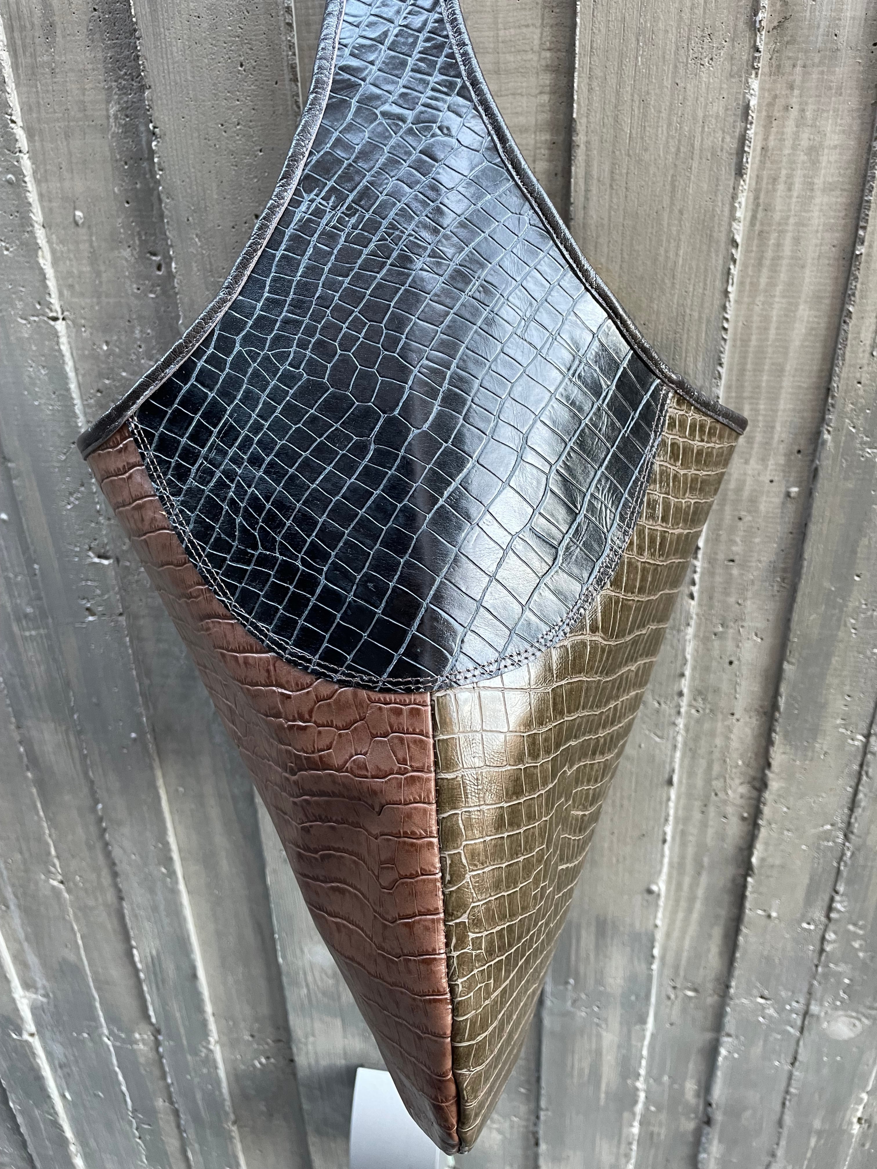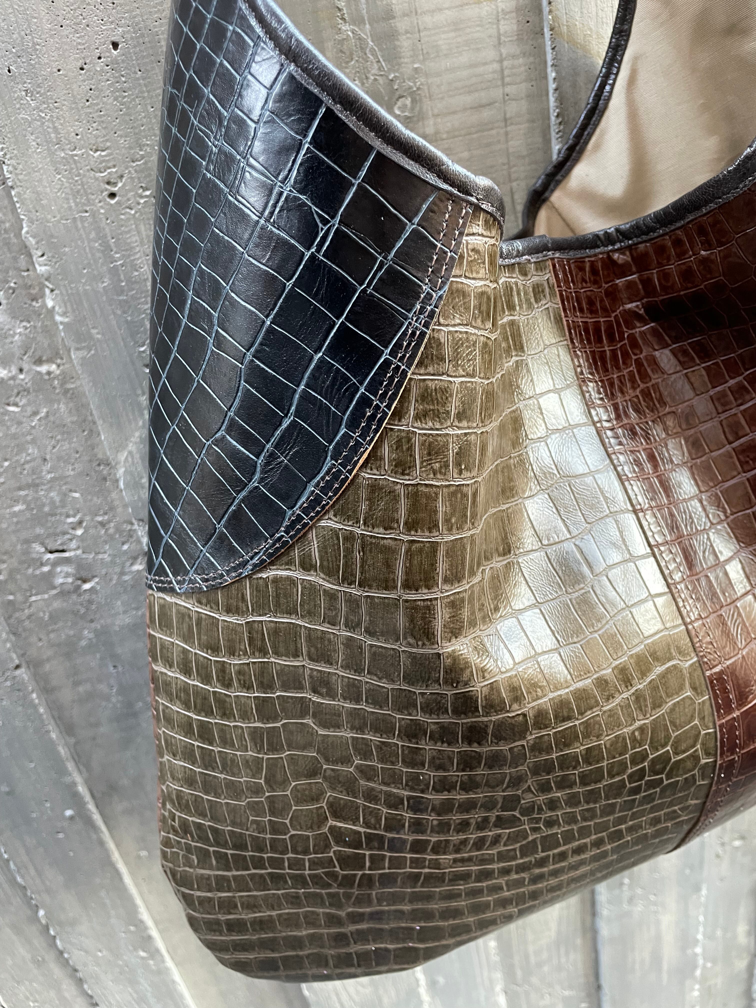 ■洗練されたデザインのクロコ型押しショルダーバッグ