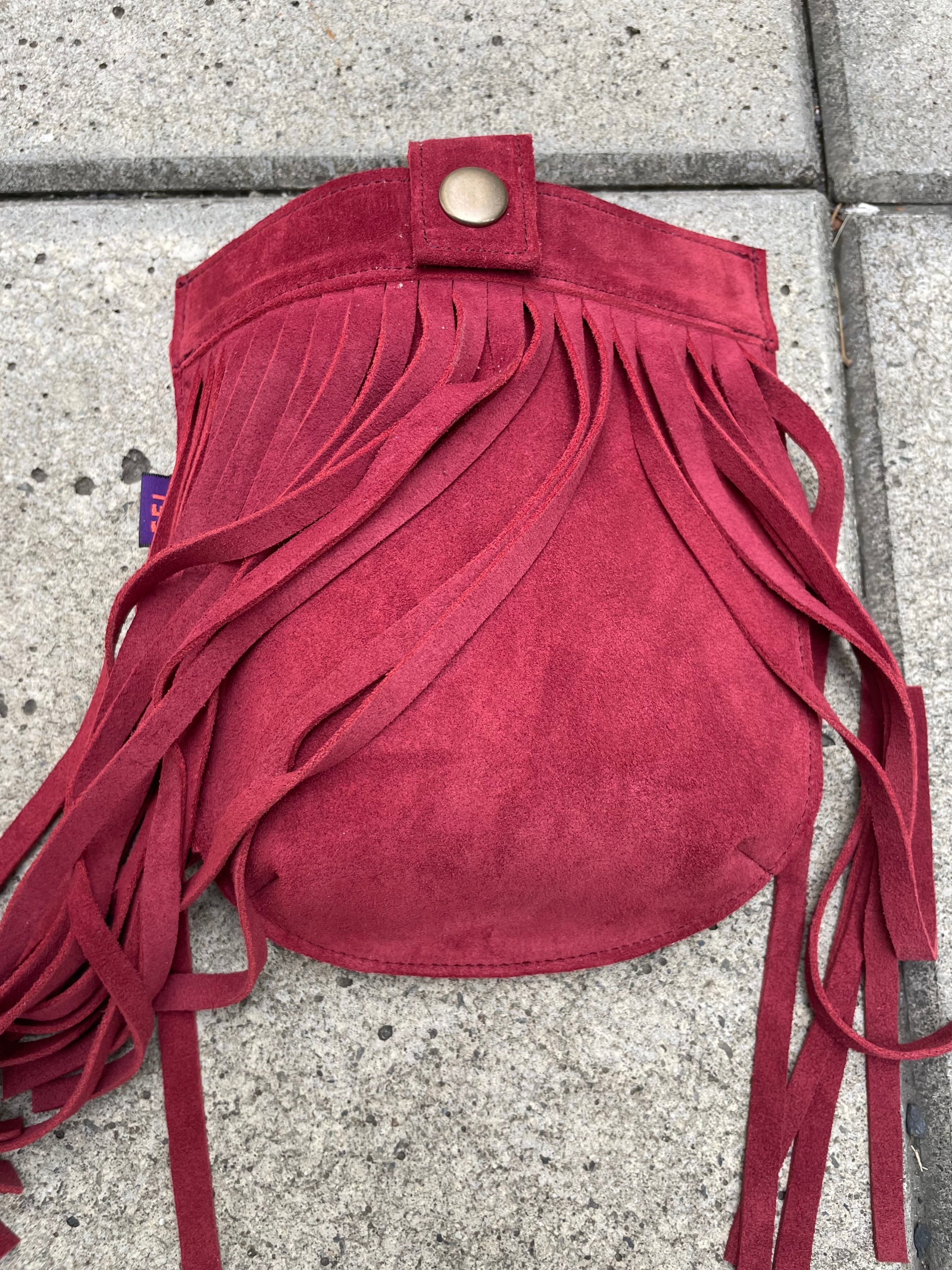 ワイン色のベロアでフリンジベルトポーチ作りました