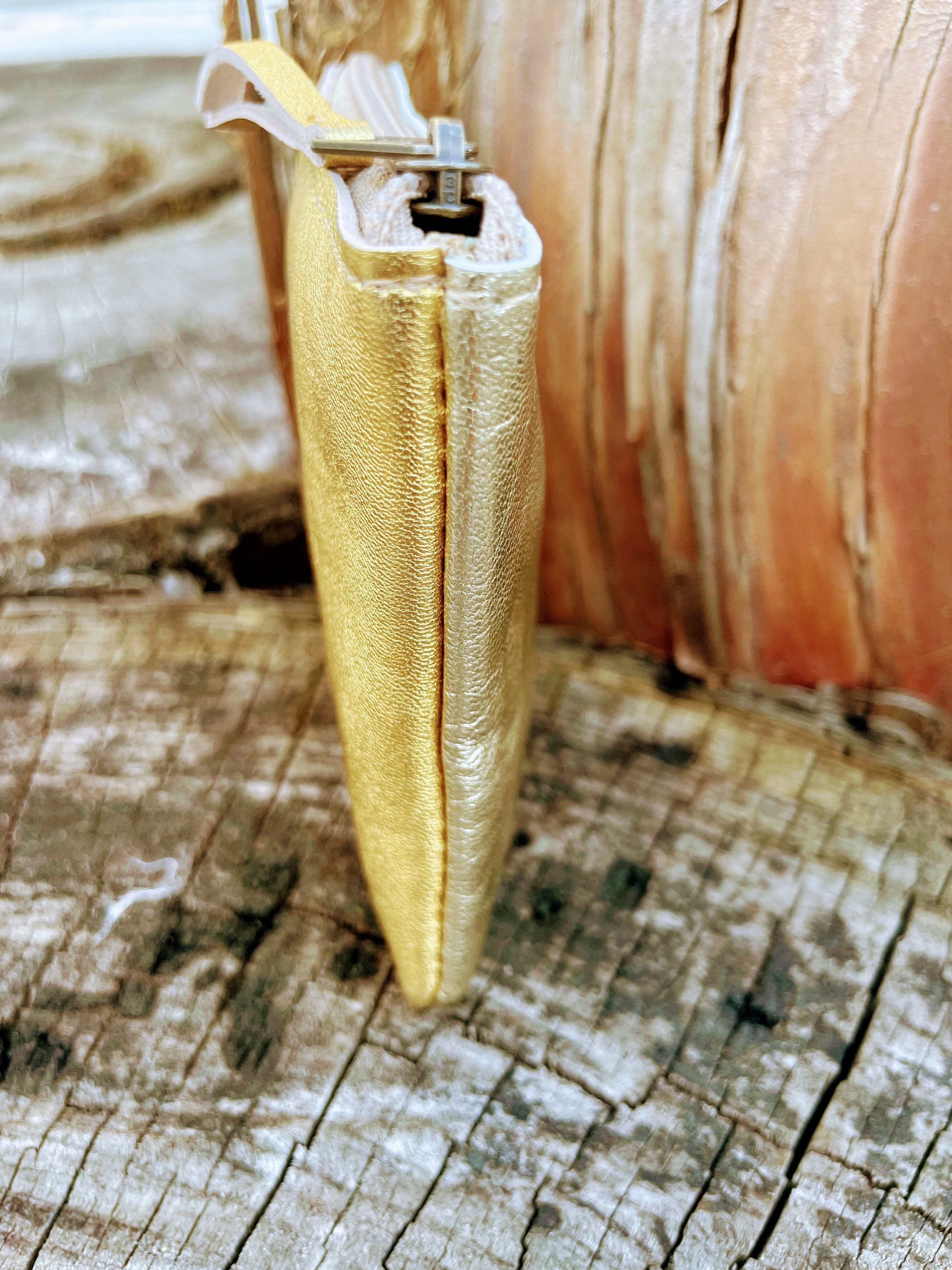 表は存在感のあるゴールドメタリック、裏側は光の反射が美しいシルバーゴールドメタリック。