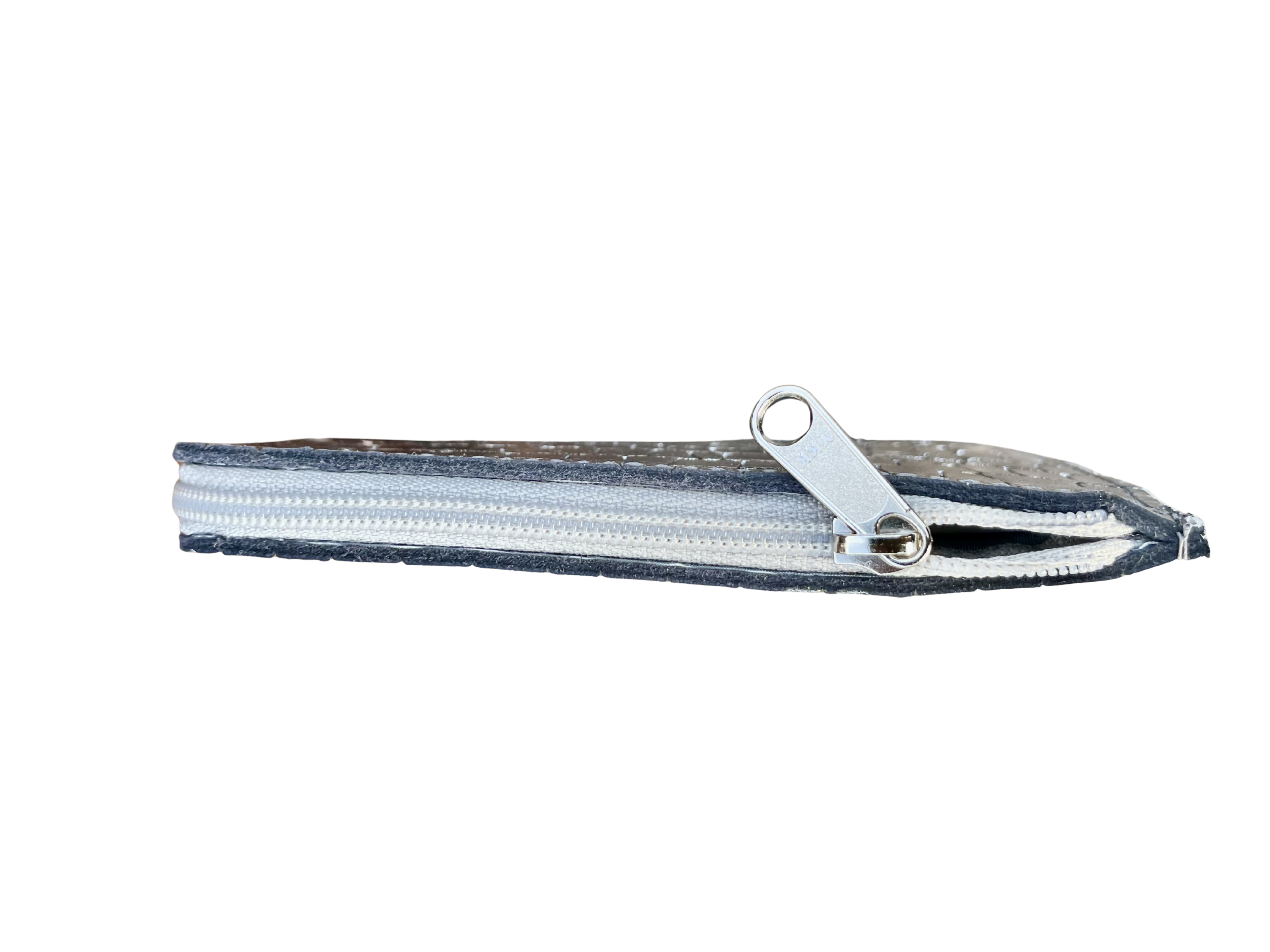 光沢のあるシルバーカラーでスタイリッシュな財布です